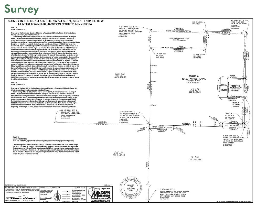 NE1/4 exc. 3 tracts, Section 1, T102N-R36W – 131.97 total acres