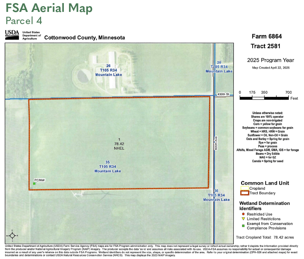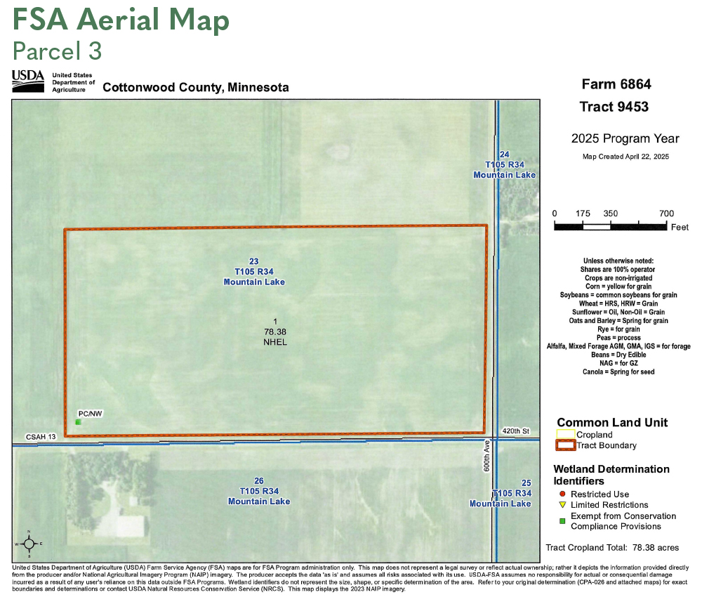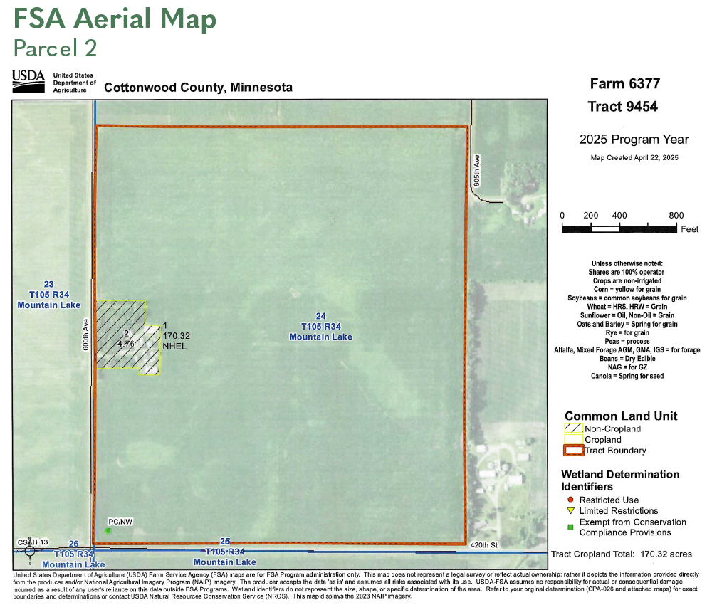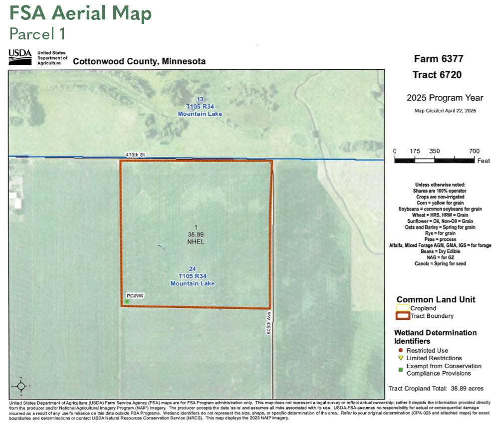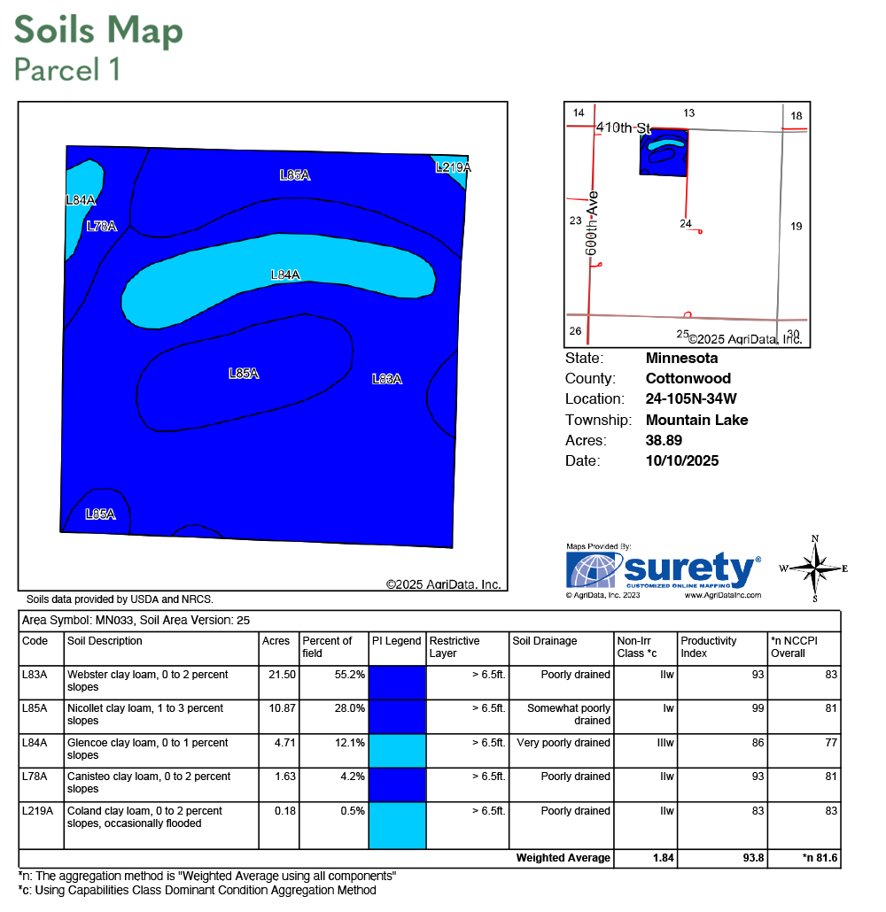 S20 Rods of NW1/4 and N40 Rods of SW1/4 Section 24, T105N-R34W and SW1/4 exc N1/2 of N1/2 of SW1/4 & exc S521' of N1412' of W496' Section 24, T105N-R34W (Mountain Lake Township, Cottonwood County)