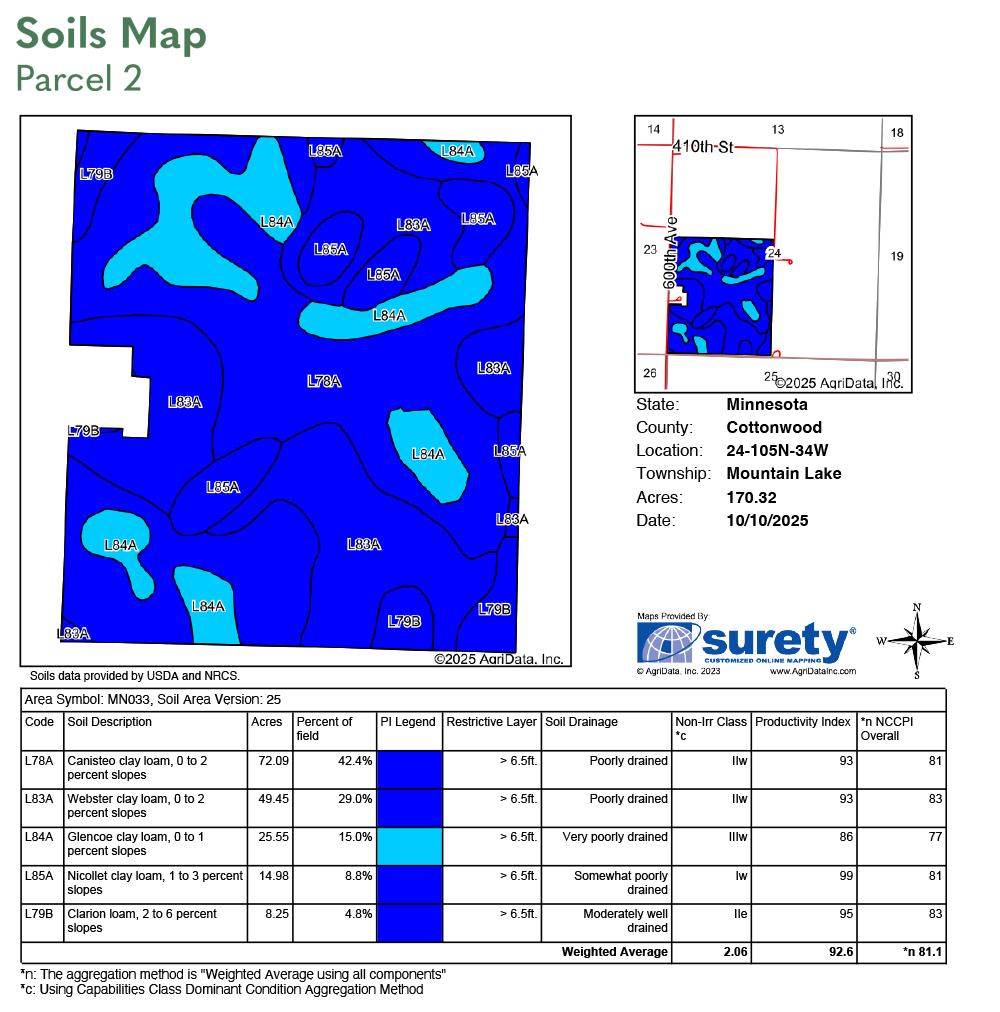 Nicollet clay loam, Webster clay loam, Glencoe clay loam, Canisteo clay loam, Coland clay loam. See soil map.
