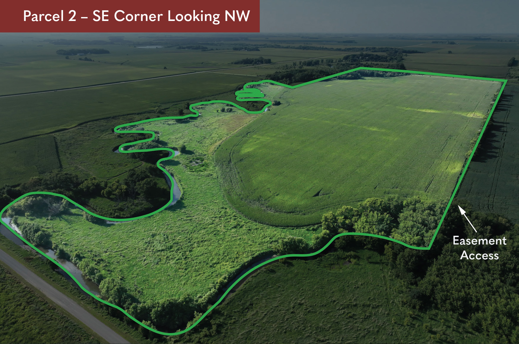 The land east of the river is accessed through a legal easement.