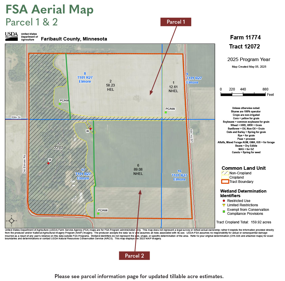 FSA tillable and base acres have been estimated based on survey and 156EZ. Subject to change pending FSA reconstitution.