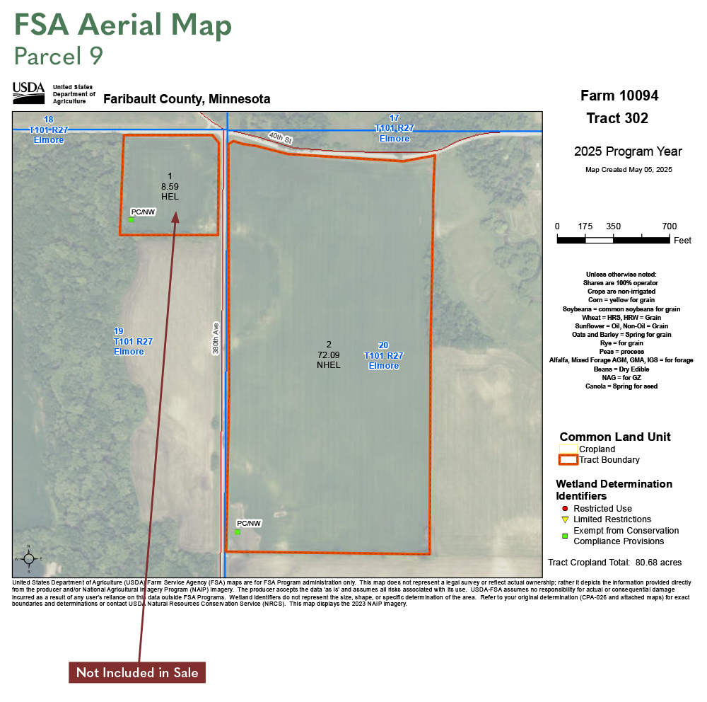 FSA tillable and base acres have been estimated based on survey and 156EZ.