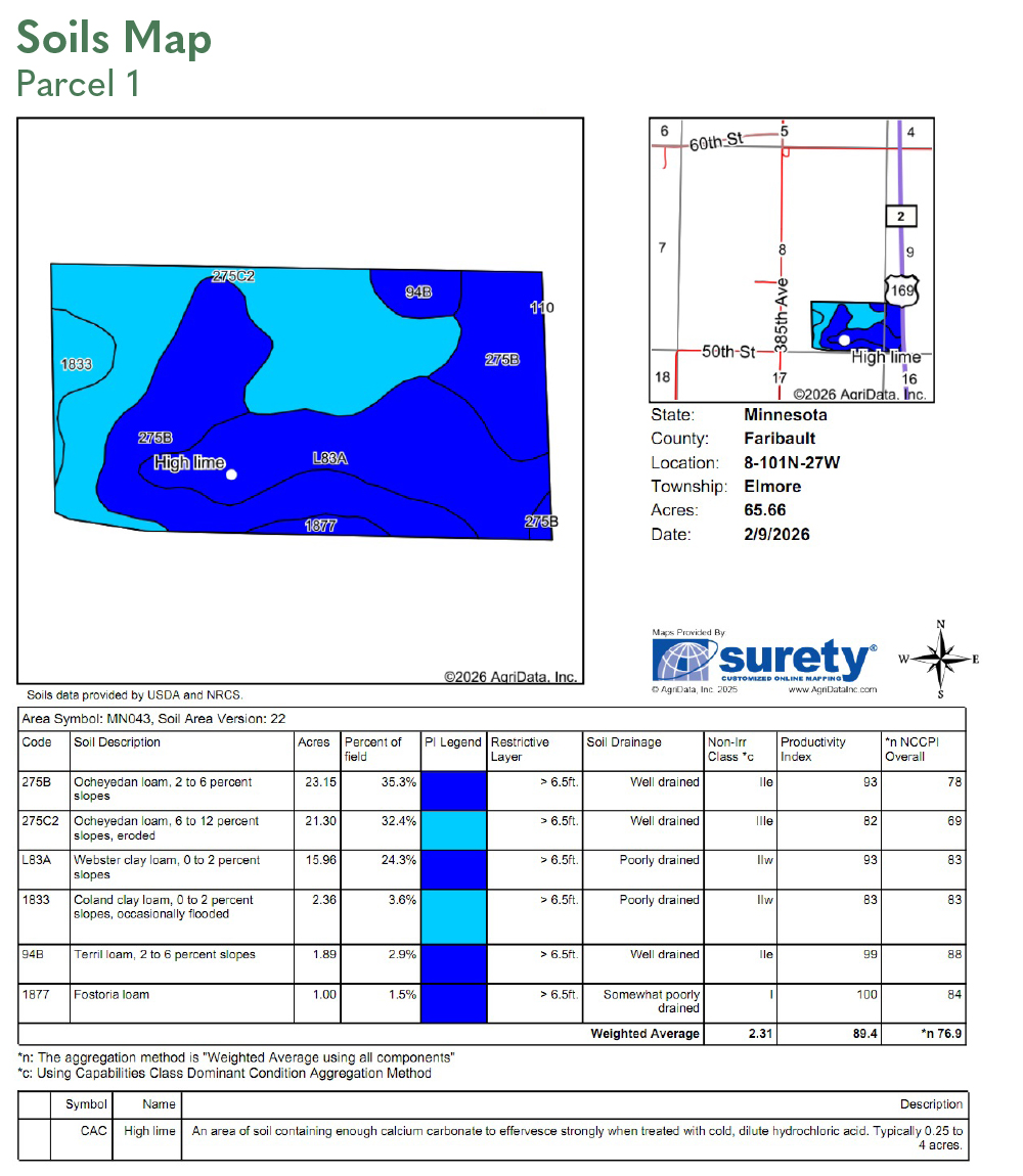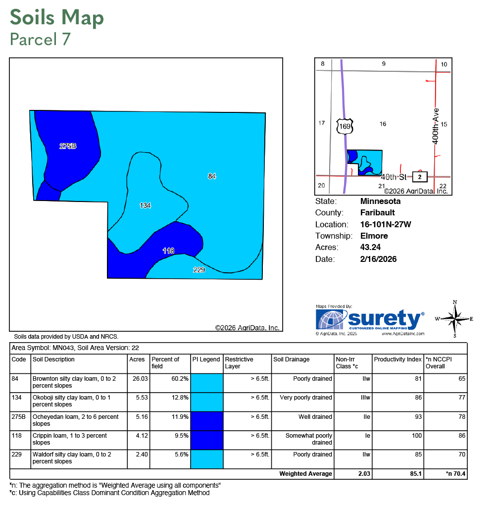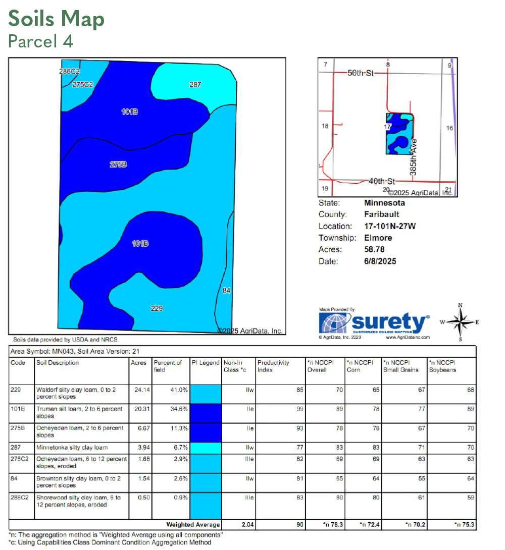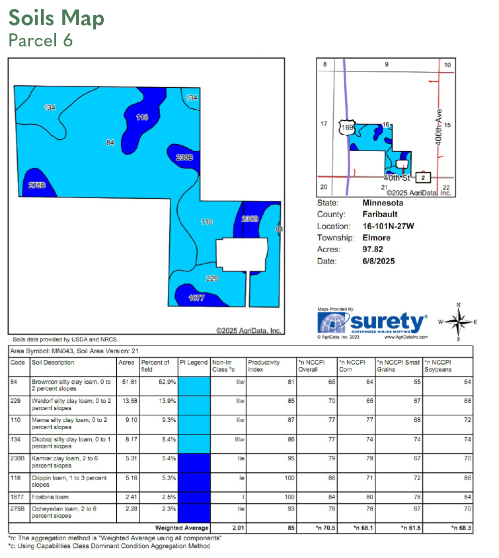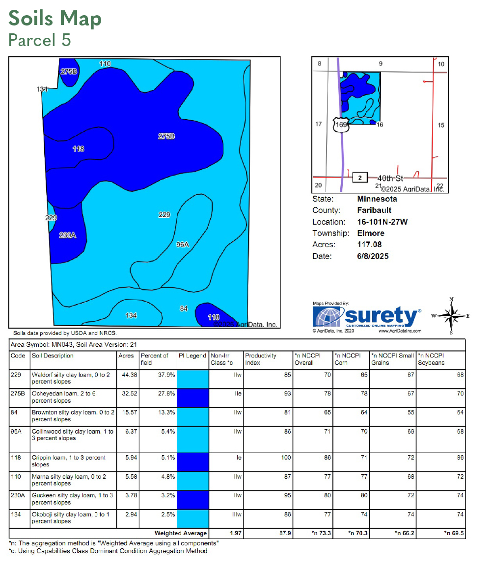 SOIL DESCRIPTION: Brownton silty clay loam, Waldorf silty clay loam, Nicollet clay loam, Clarion loam. See Soils Map.
