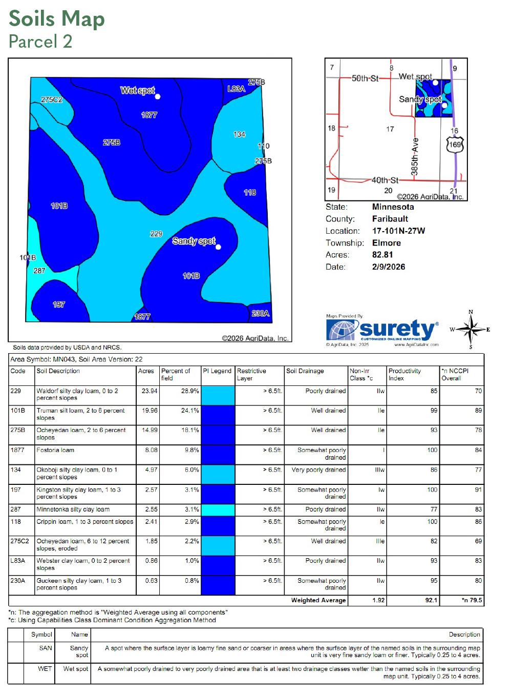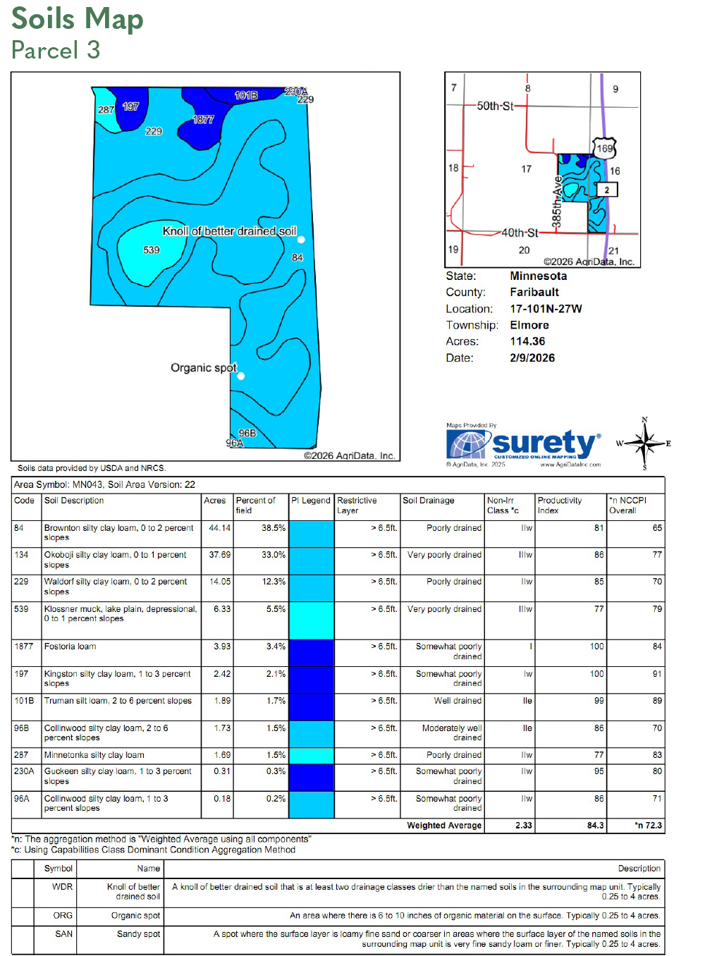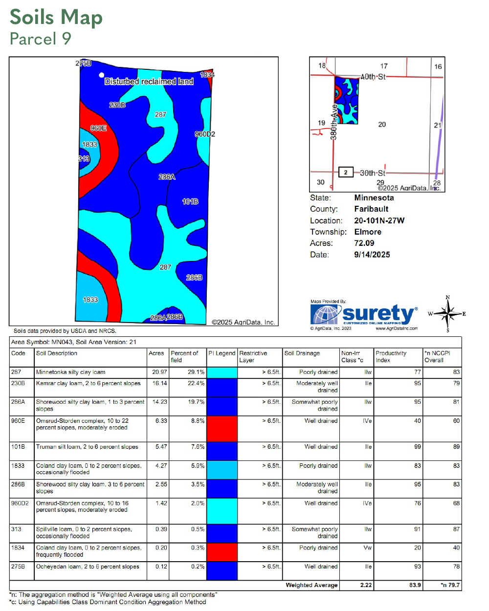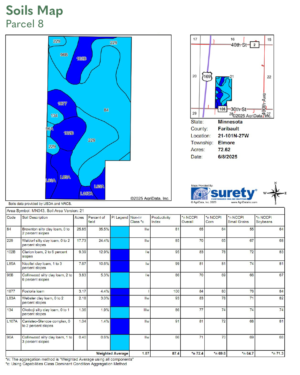 SOIL DESCRIPTION: Brownton silty clay loam, Waldorf silty clay loam, Nicollet clay loam, Clarion loam. See Soils Map.