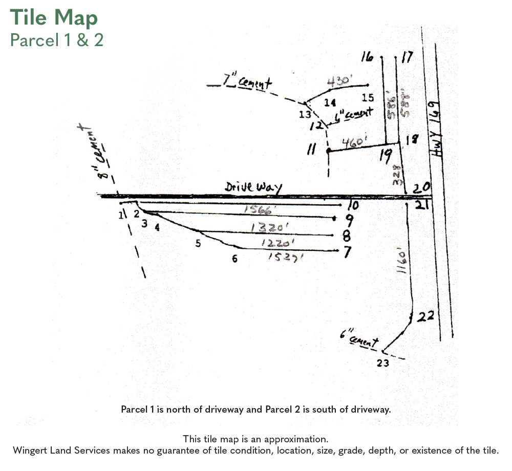 Buyer of Parcel 2 will enter into a drainage agreement with Buyer of Parcel 3 for maintenance and repair of existing tile lines if purchased by separate buyers.