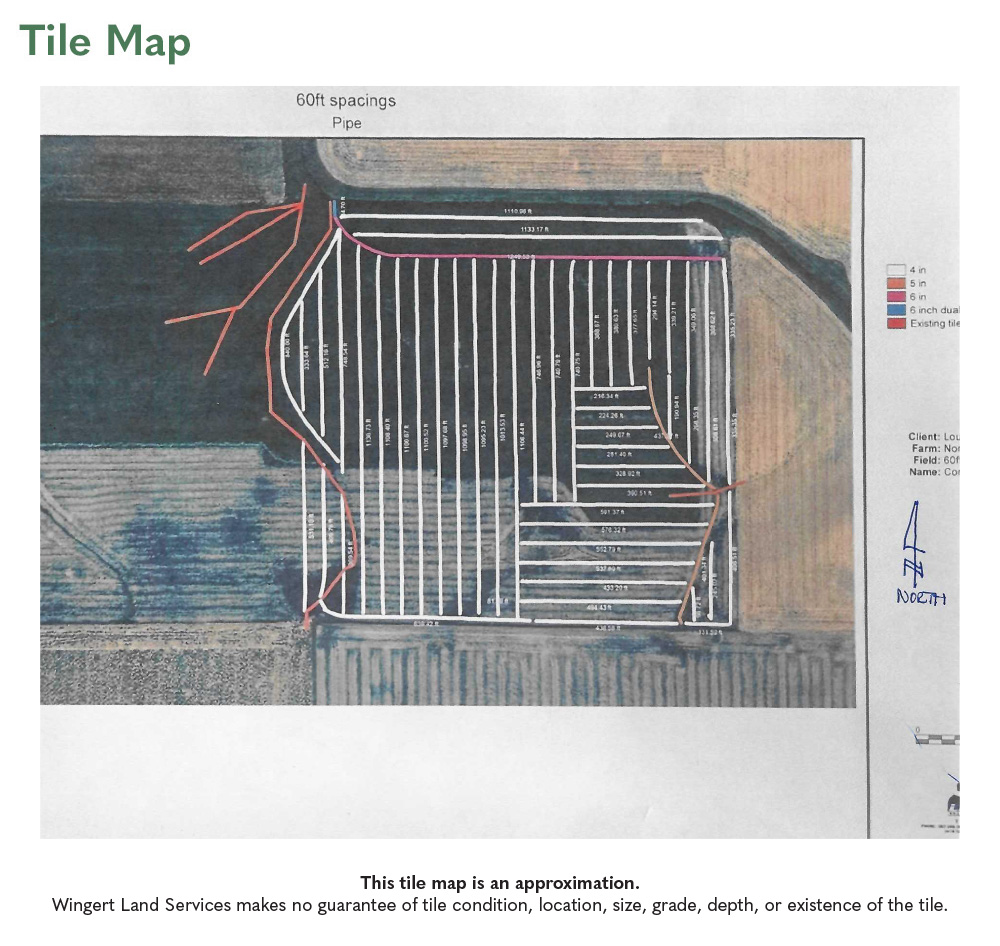 Tile: Private mains and random laterals. NW 1/4 of SW 1/4 Section 14 is system tiled, 60' spacings. See tile map.