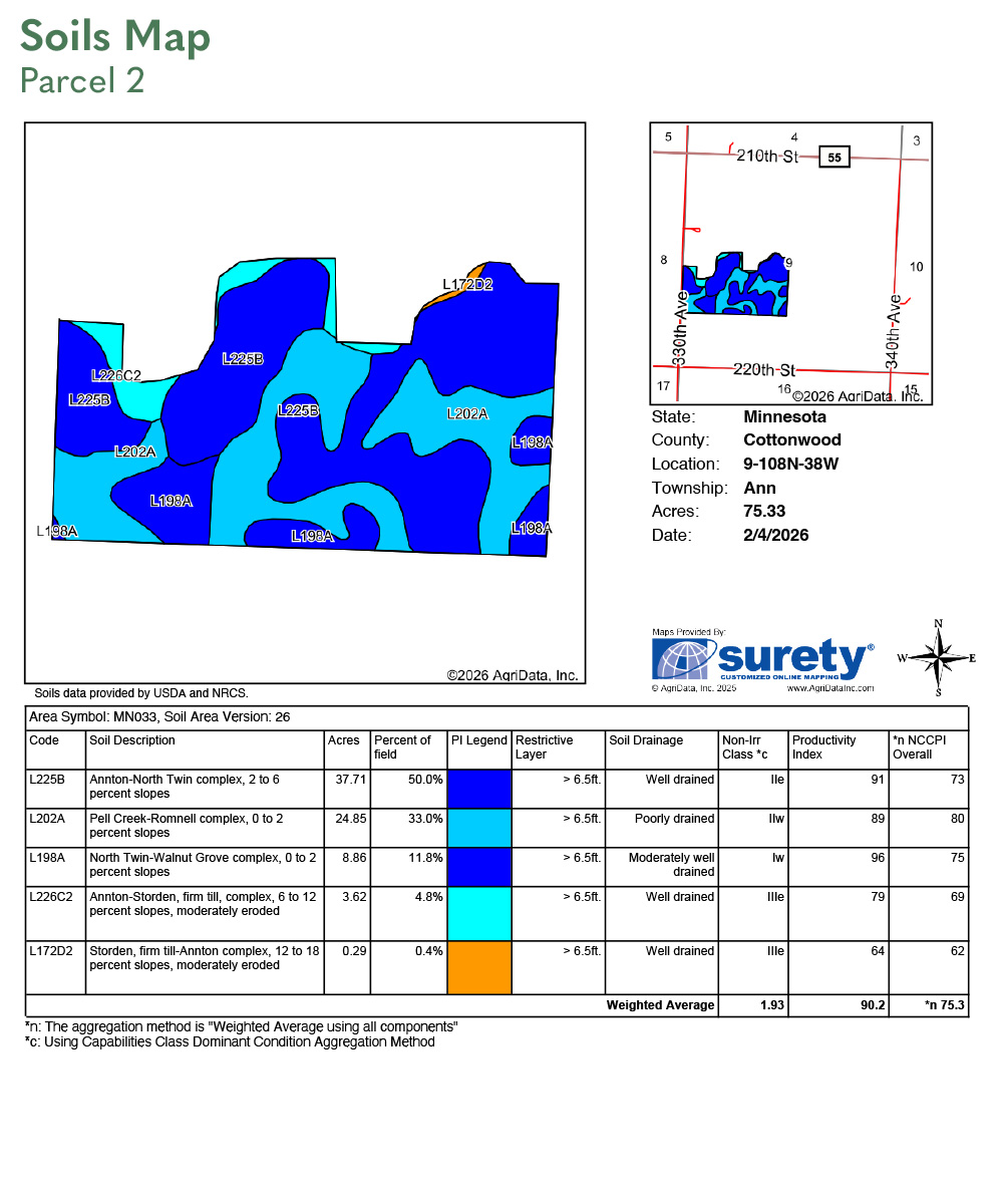 Annton-Storden, Annton-North Twin complex, Pell Creek-Romnell complex. See Soils Map.